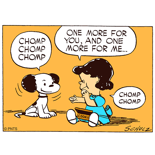 初めてクッキーを食べてから1か月後の1953年2月8日、スヌーピーはライナスの姉ルーシーからクッキーをもらいました。